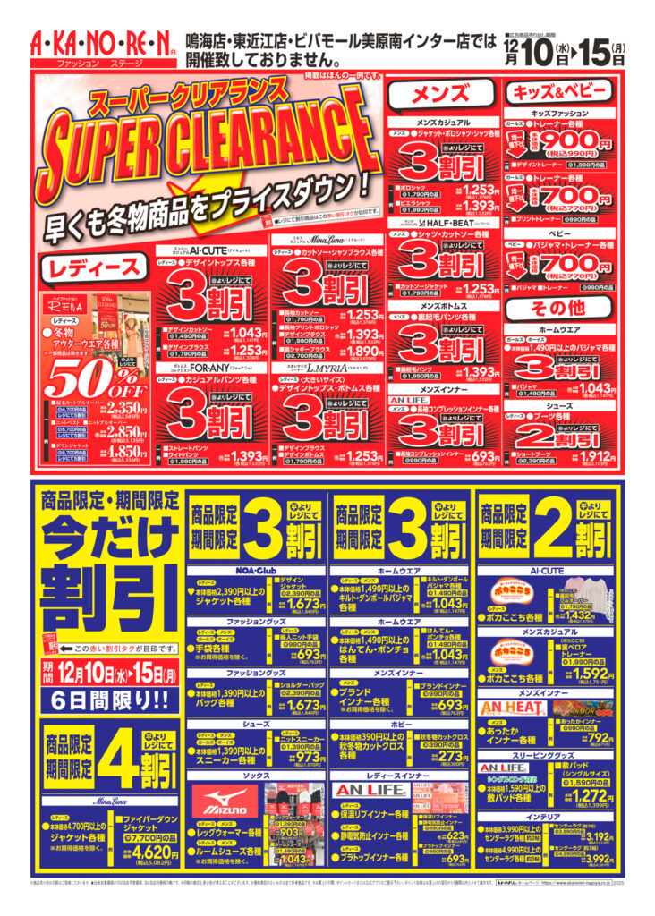 スーパークリアランス/新年準備セール12月10日~12月15日 店内にお値打ち商品を満載にしてお客様のお越しをお待ちしております