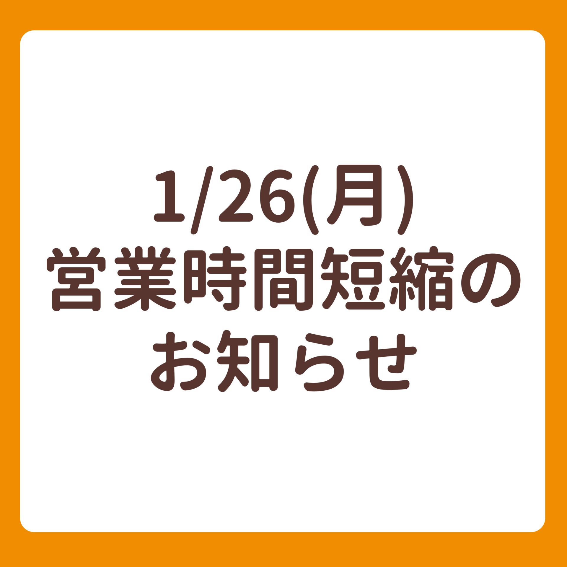 1/26(月)営業時間短縮のご案内日頃よりなるぱーくをご利用いただきありがとうございます。 誠に勝手ではございますが、1/26(月)は全館19時閉店とさせていただきます。 ご迷惑をおかけいたしま…