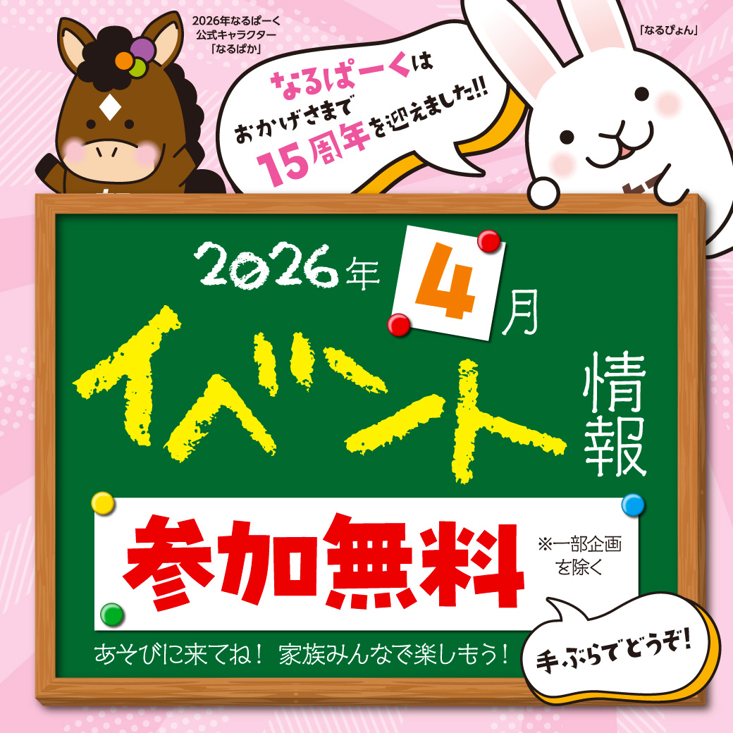 4月のEVENT NEWS!4月もなるぱーくの楽しいイベントに遊びにきてね♪ ハッピーイースターイベントや、ビーンボウリング・1/10チャレンジなどのチャレンジ系イベント、 人気のプチマル…