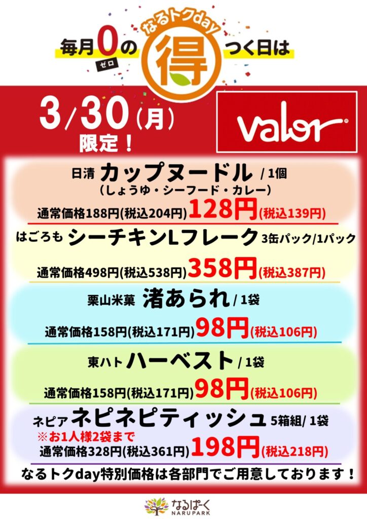 3/30(月)なるトクday毎月0の付く日は「なるトクday」!! どこかのお店で、とてもお得な企画を開催しています♪ 3/30(月)の特別企画は・・・ 1F 「プチマルシェ・フルール」に…