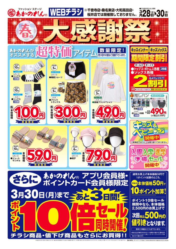 WEBチラシ 春の大感謝祭・ポイント10倍セール3月28日(土)~3月30日(月)開催! お値打ち商品を店内に満載にして、お客様のご来店をお待ちしております。