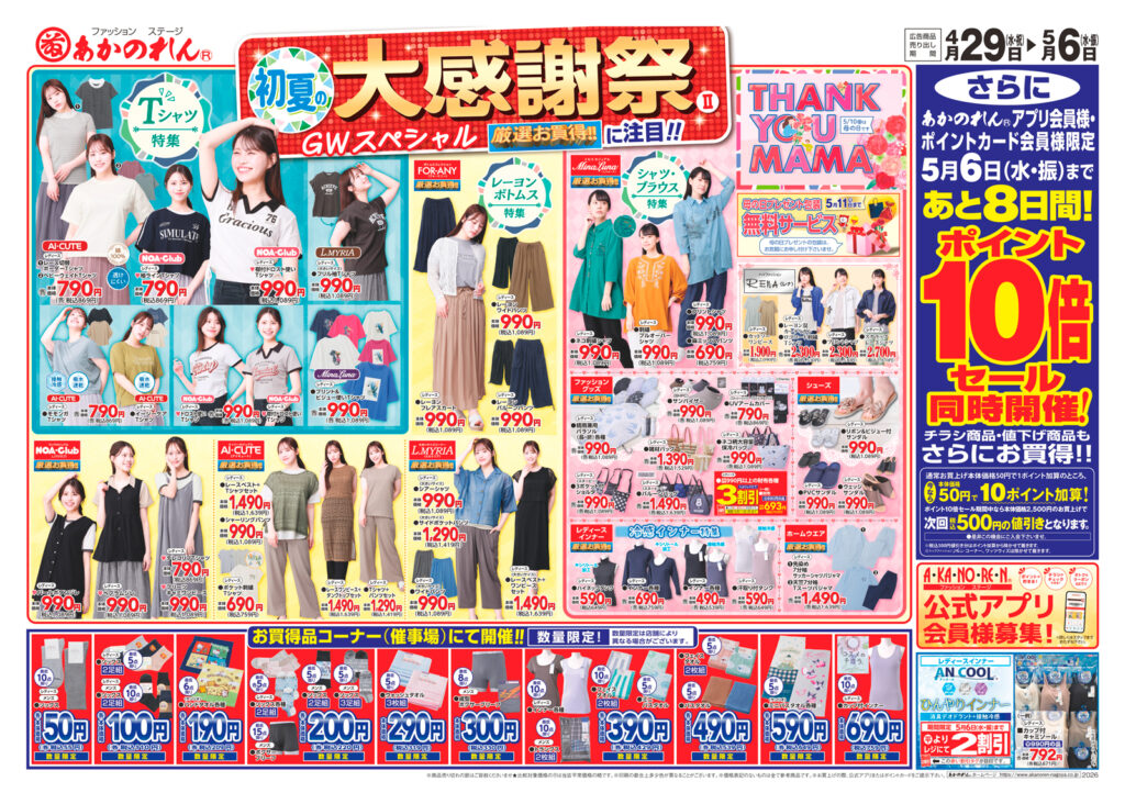 WEB限定チラシ「初夏の大感謝祭・ポイント10倍セール」4月25日(土)~28日(火) 店内にお値打ち商品を満載にしてお客様のお越しをお待ちしております!