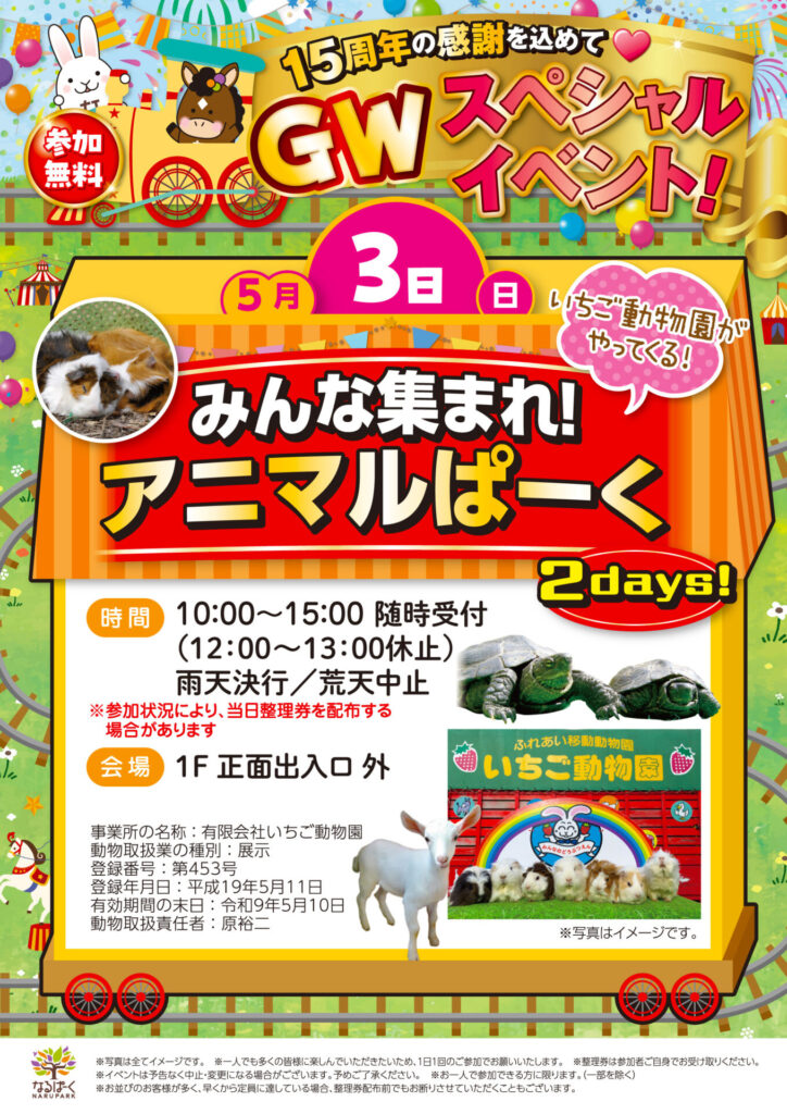 🎪ゴールデンウィーク🎪 なるぱーくで遊びまくれ‼ なるぱーくのイベントは全て参加無料✨ ここでしか体験できない、ゴールデンウィークの思い出をたくさん作ってね!!…