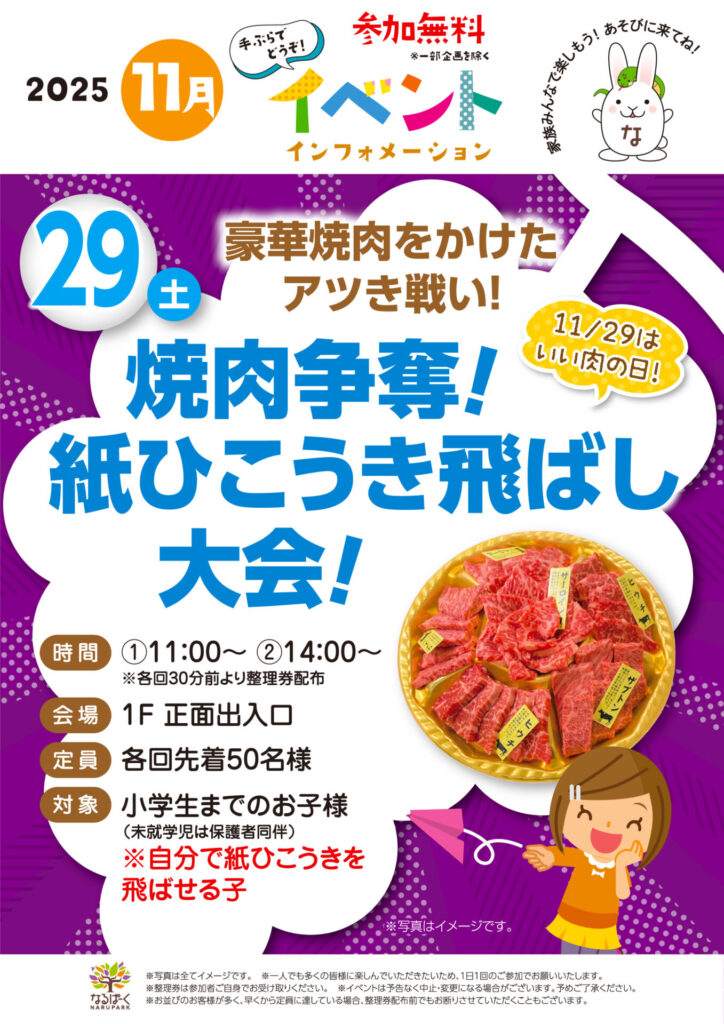 参加無料 11月29日はいい肉の日! 豪華焼肉をかけたアツき戦い! 紙ひこうきを誰よりも飛ばして美味しい焼肉をGETしよう! 日程:11/29(土)時間:①11…