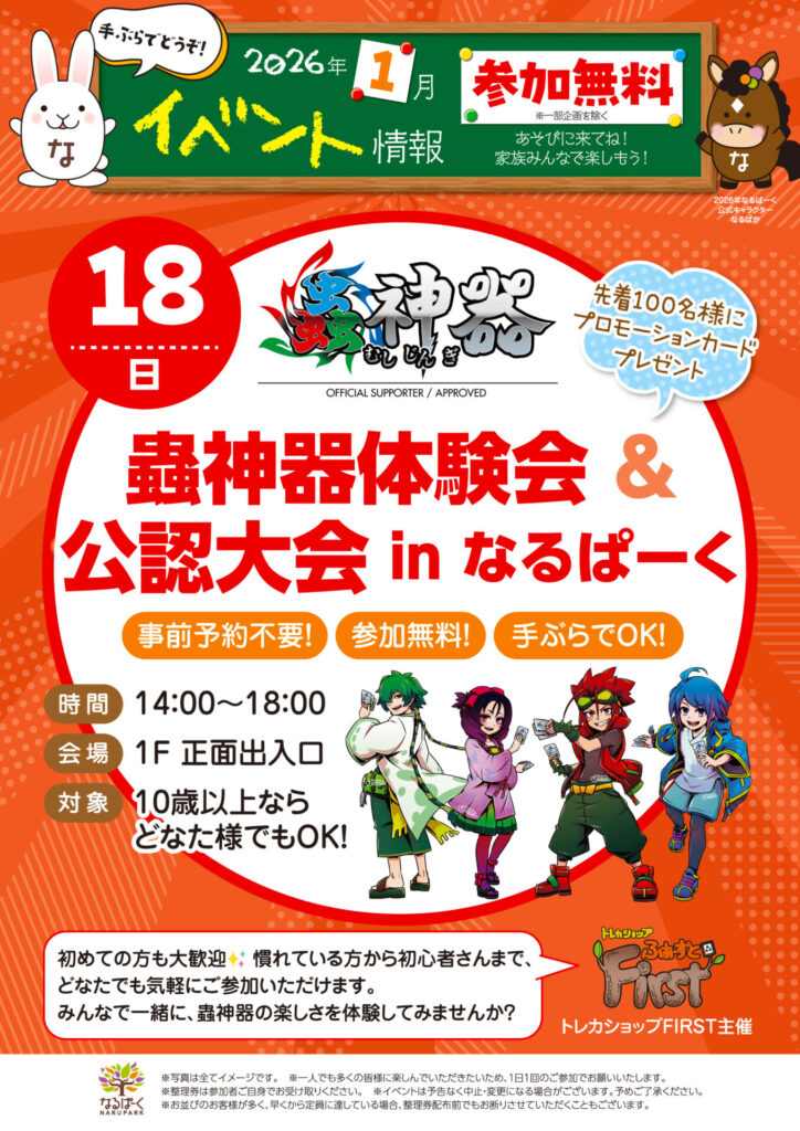 参加無料 DAISOで大人気の蟲神器の体験会&公認大会がなるぱーくで開催! 先着100名様にプロモーションカードのプレゼント! 初めての方でも大歓迎です…