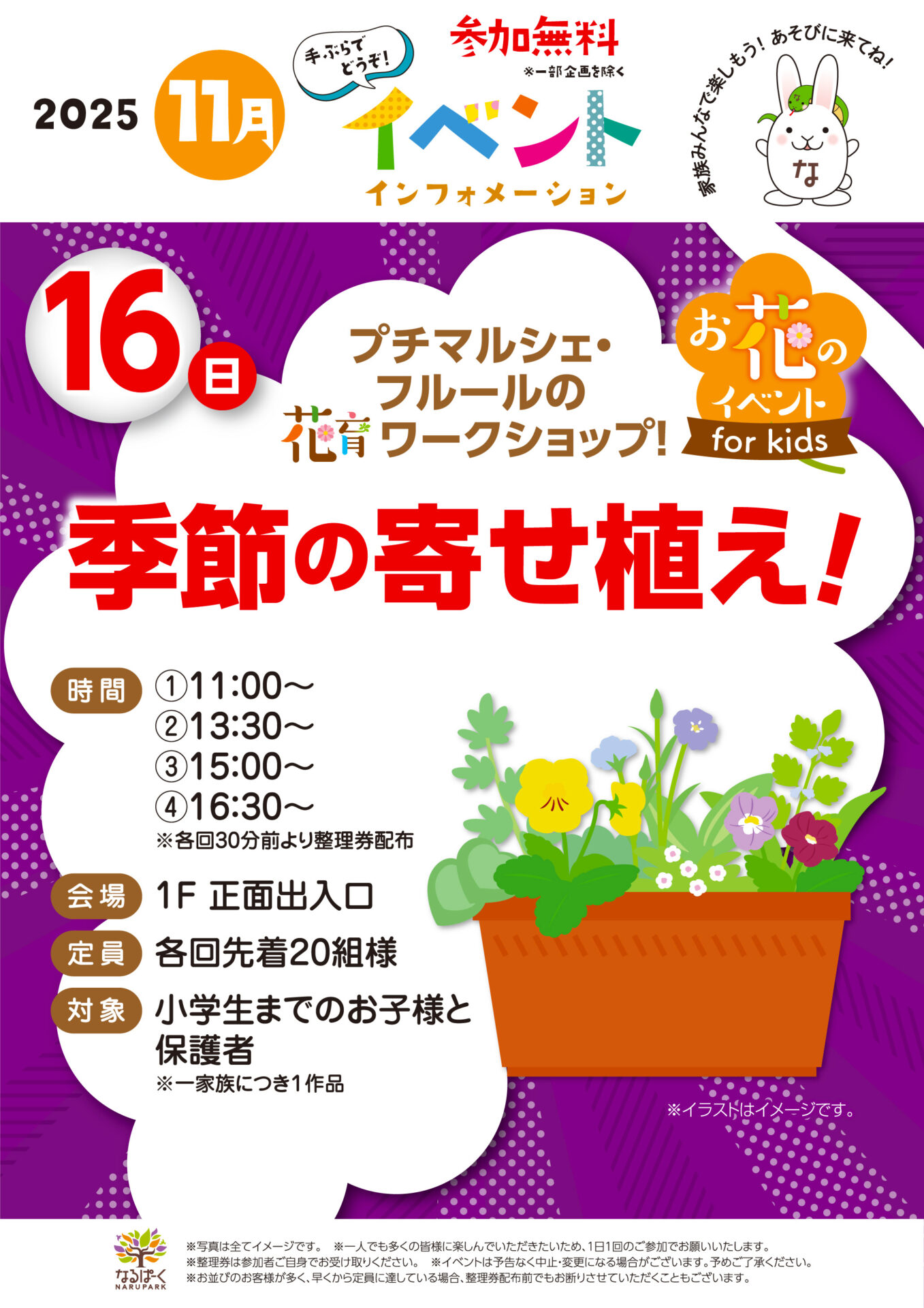 なるぱーくのお花屋さんプチマルシェ・フルールの花育ワークショップ!