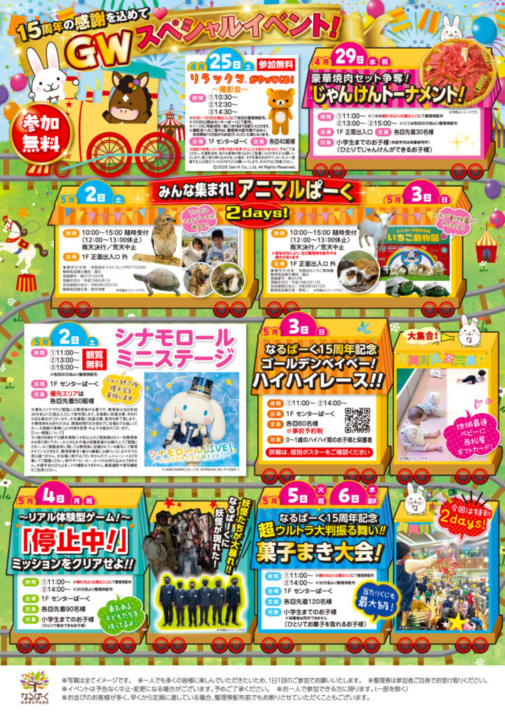 ゴールデンウィークも、なるぱーくでお待ちしています!!