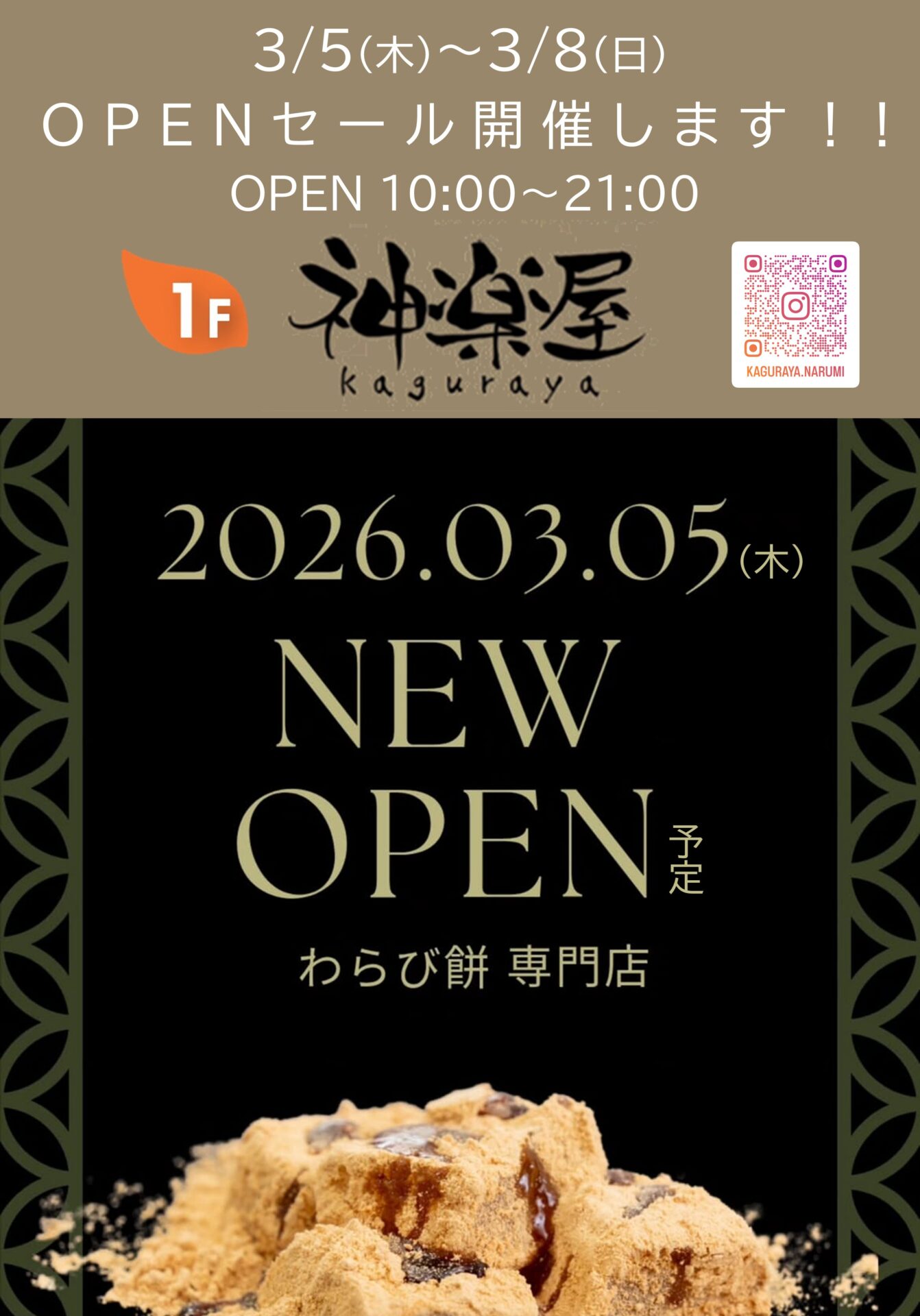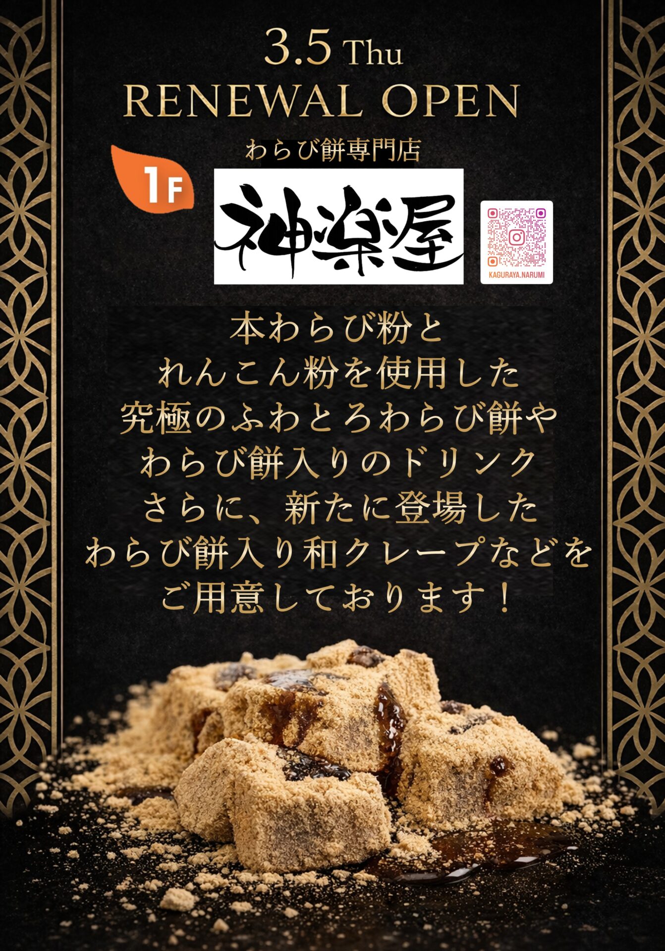 わらび餅専門店 神楽屋、3/5(木)RENEWAL OPEN!!